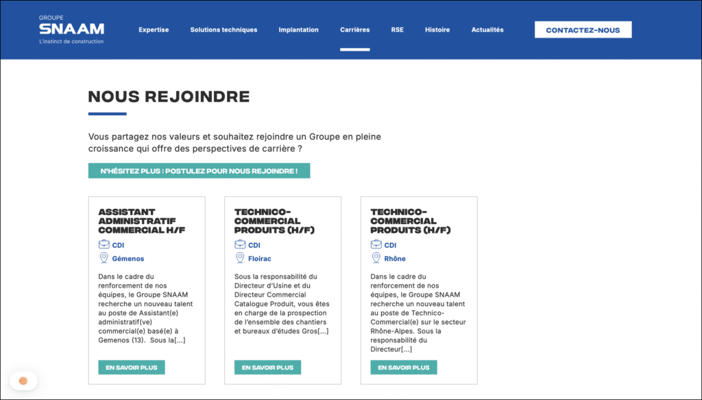 Nous avons également intégré à la page « Carrière » un accès direct aux offres d’emploi du Groupe via l’ATS HelloWork.